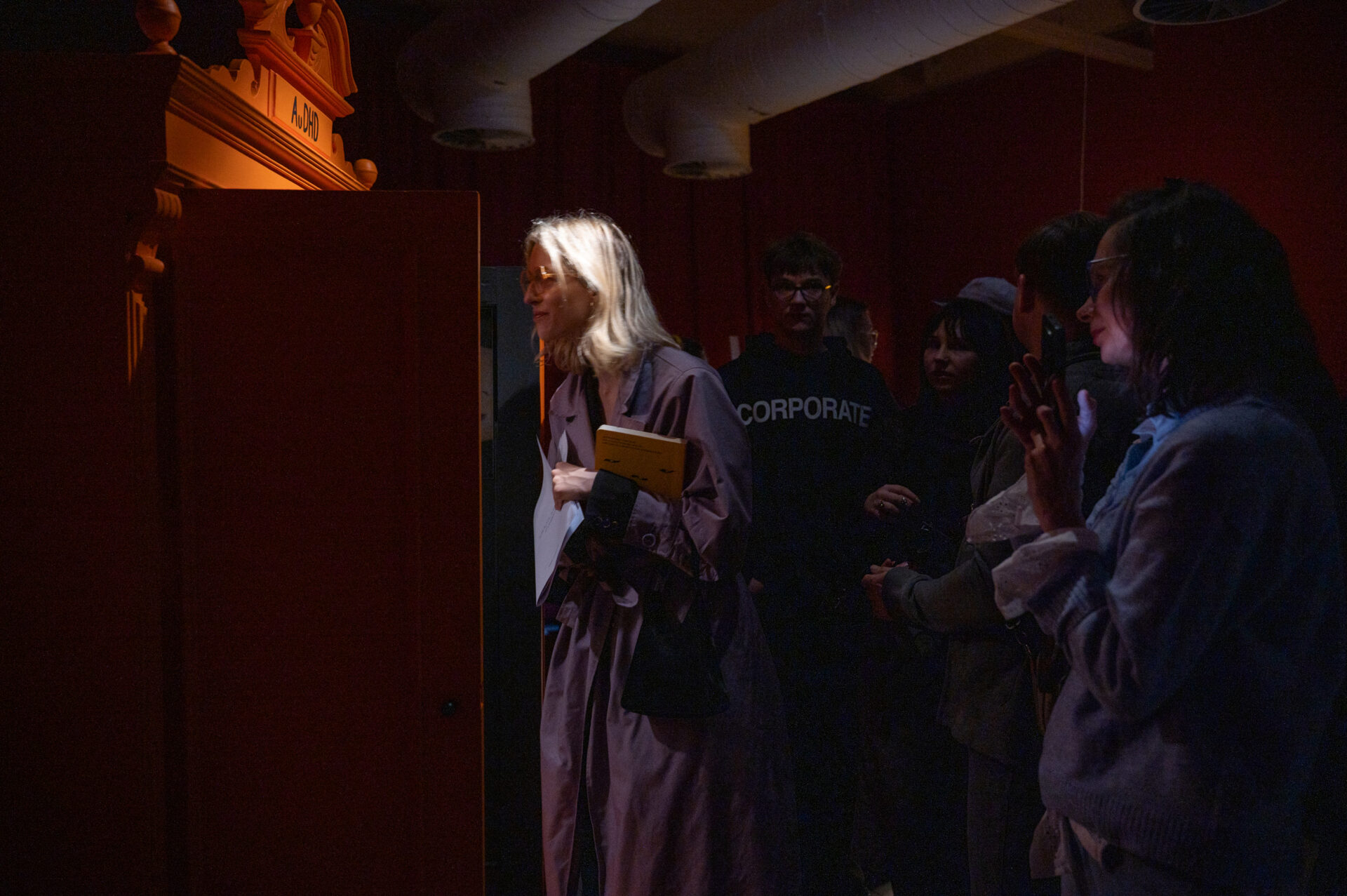 Osoby artystyczne dzielą się na wystawie swoimi doświadczeniami przeciążeń i przebodźcowań oraz umożliwiają doświadczenie wyciszenia i regulacji. W przestrzeni wystawy prace rozpięte są między nadmiarem bodźców a miejscem odpoczynku od hałasu schematów, zapraszając do towarzyszenia w neuroodmiennym doświadczeniu.